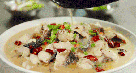 酸菜鱼上桌前总有一个仪式感的动作。一勺热油洒下的尽兴,将鱼肉的鲜味锁住,把各种辣椒的味道肆意散发出来。