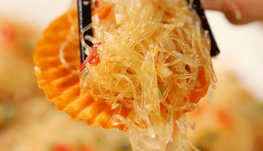 夹走上面的入味粉丝,下面藏了一颗饱满的扇贝肉。分开吃,可以尝到各自的滋味;挪下肉来一起入口,口感更丰富!