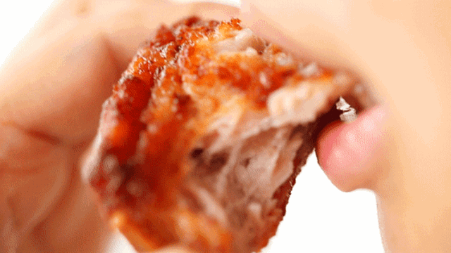咬扯下一块肉,外表酥香,内里入味。最喜欢外面焦香的咀嚼感,口感一级棒!吮指回味,油炸的肉肉就是香啊~