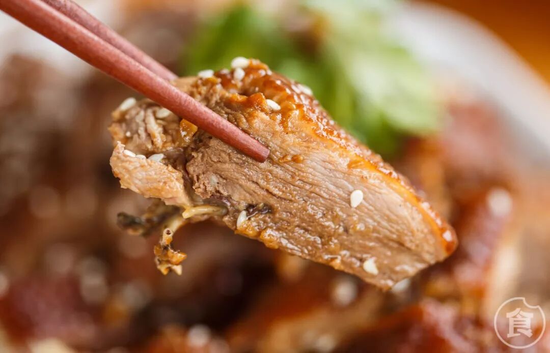 卤汤渗透进厚实的鹅肉中,既有肉香又有卤香。鹅肉皮下脂肪较少,肉感满满,咸香入味。
