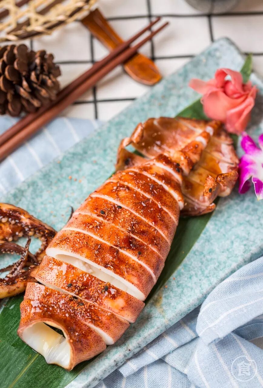 可以说是很多小胖友的最爱!分量十足的串烧鱿鱼筒,一整只上碟。