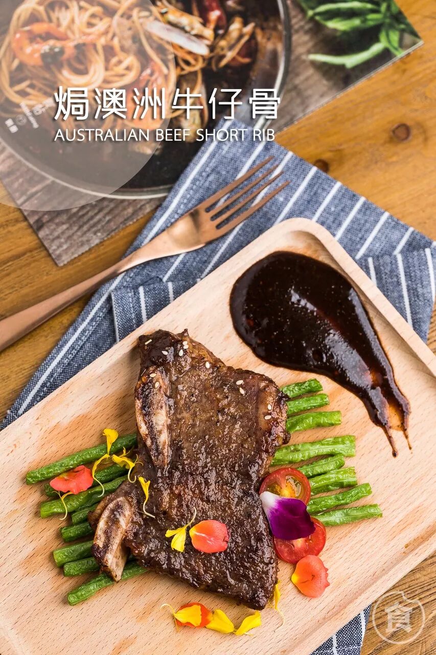 /焗澳洲牛仔骨/用生煎的方法烹制进口澳洲牛仔骨。口味可选黑椒或红酒味。黑椒汁味浓开胃;红酒细嫩鲜香。另外铺底的豆角也可食用哦。