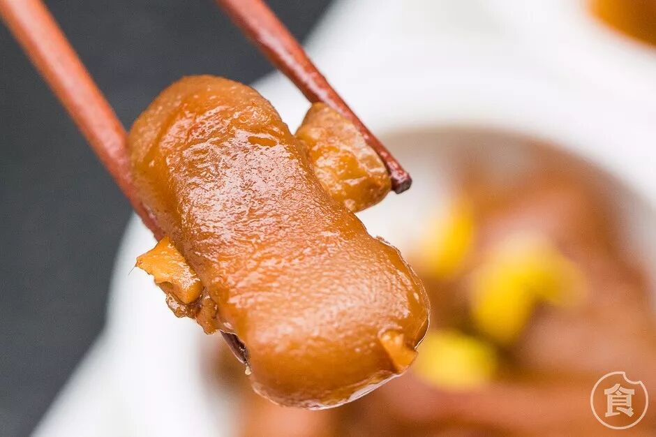猪手在制作前经过了细心处理,所以不用担心有异味。咬一口便能轻易脱骨,溺出满满的胶原蛋白。