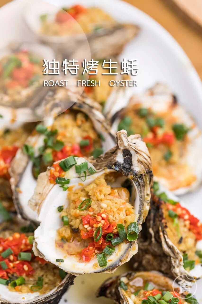 /烤生蚝/晚场喝酒不能缺少下酒菜。烤生蚝,是这里TOP1的夜场人气王。肥美生蚝配上蒜蓉辣椒,每颗都炭烤得滴汁,尽情释放原生的野味。