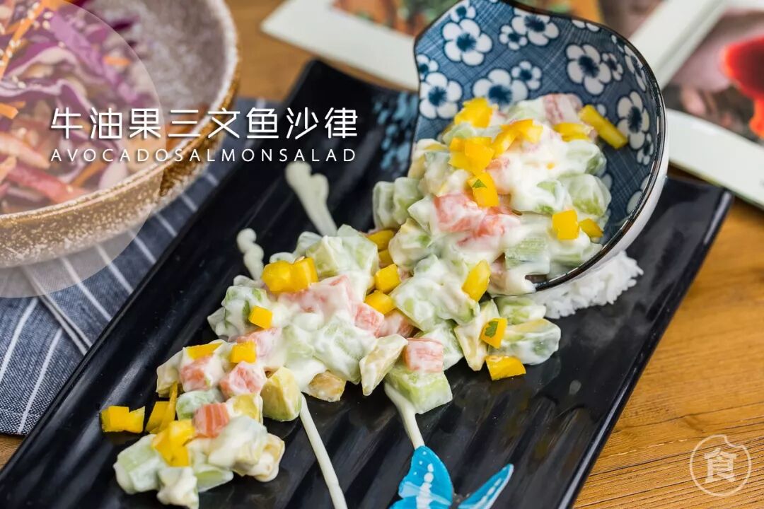 /牛油果三文鱼沙律/将三文鱼和牛油果切粒,用沙拉酱混合包裹,让整体口感变得冰爽,每一种食材都发挥着恰如其分的味道。