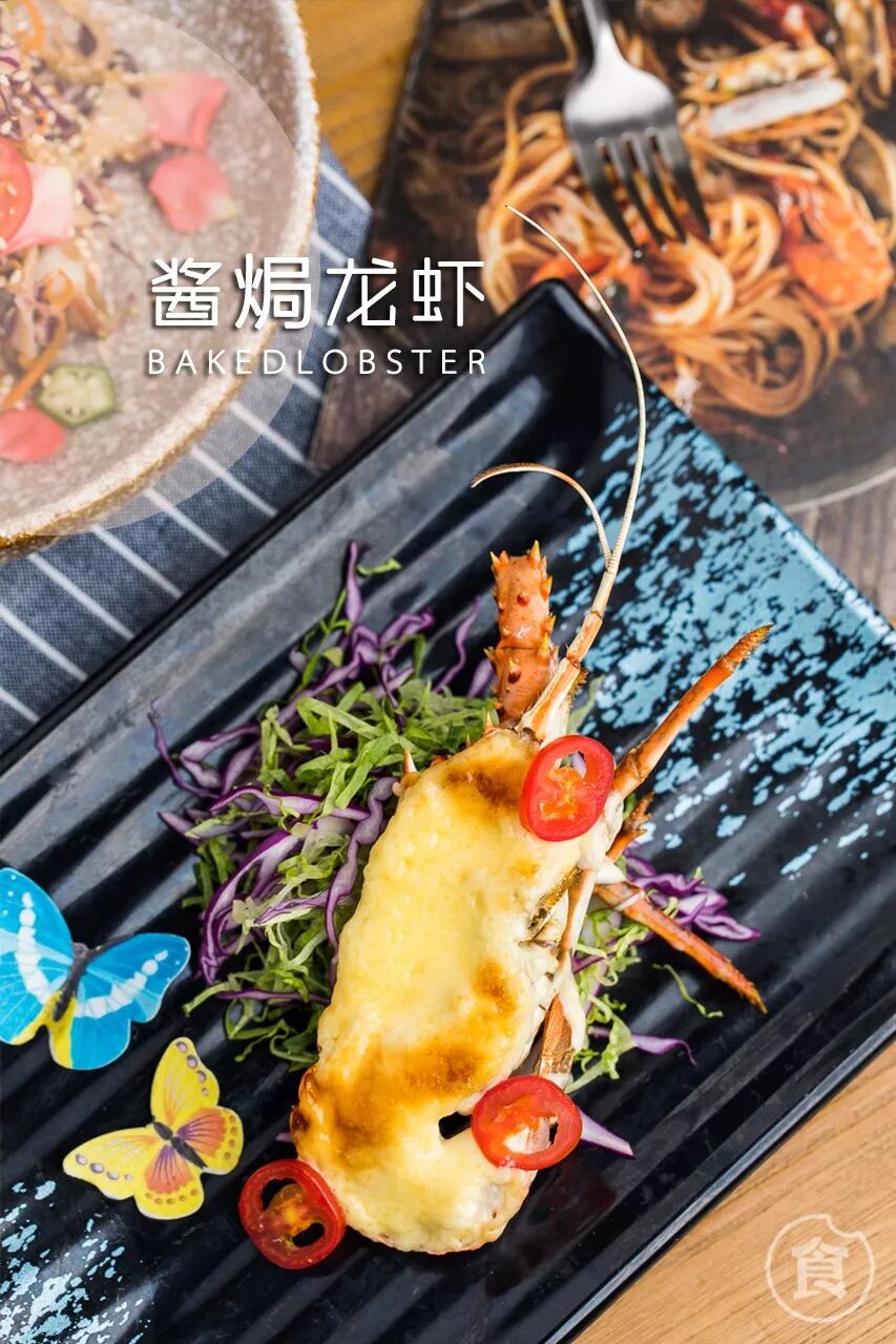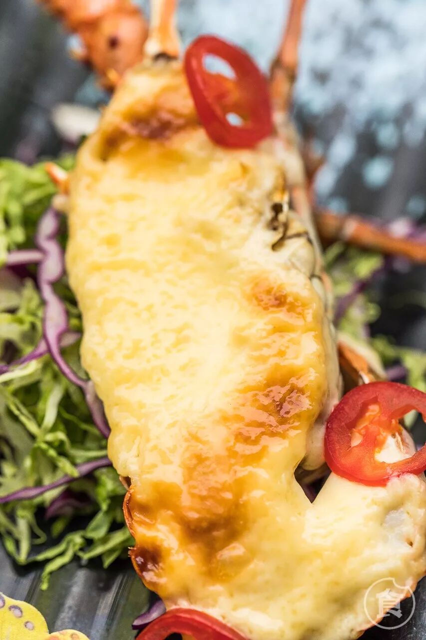 /酱焗龙虾/选用结实的小青龙,开只切半,铺上混合了些许芝士的秘制焗酱,配上龙虾肉散发出淡淡芝士咸香,口感饱满丰富。