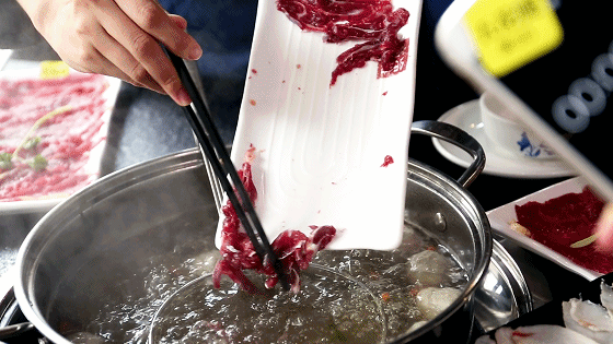 每一碟牛肉上桌都会带有一个小标签,让你分清每种肉的同时,还能知道每种不同的肉需要涮多少秒才是最佳。