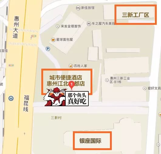 地址 | 惠城区江北惠州大道中段70号城市便捷酒店(小烹鲜)