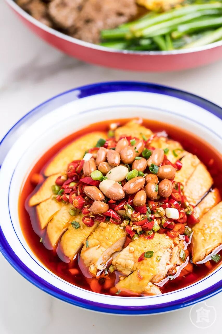 白白嫩嫩的鸡肉,衬上火辣的红油
