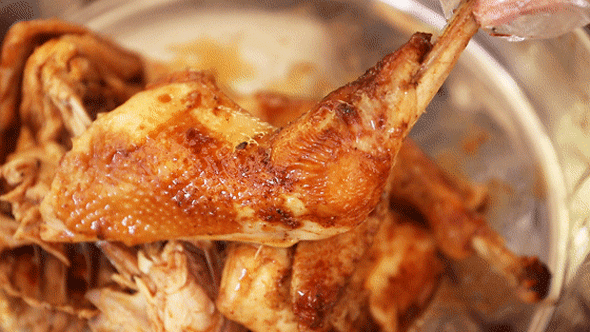 桑拿鸡选用自家放养的阉鸡,每天运动量爆棚,所以每只鸡都肉质厚实,没有多余脂肪。