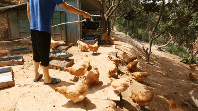 刚到这里,店家就热情地领我们去看看她的养殖场。只喂粟米谷糠和整日接受日光浴的鸡们,吃得好住得好,都长得白白胖胖,新鲜健康。