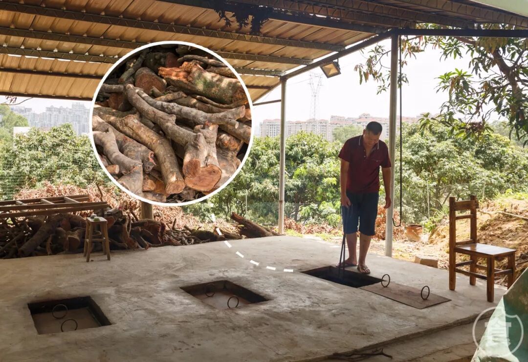 山边不远处有一个窑鸡制作区,现场展现自制窑鸡的全过程。在这里,你还能看到他们投入荔枝柴等等的预热准备。