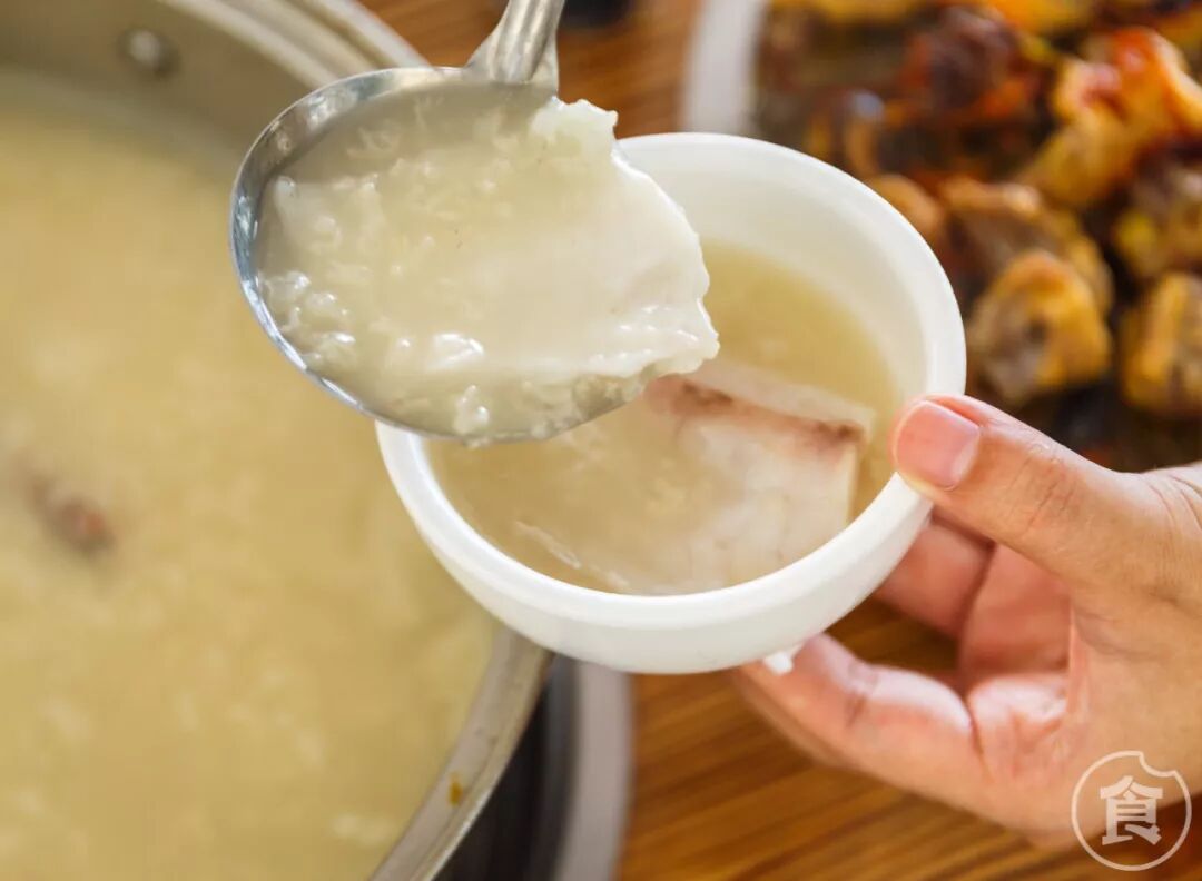上层的肉汁被蒸煮到流进锅底,混合粥米被煮得软绵,舀上一碗下肚,超级满足。清清淡淡又很惹味,果然留到最后的都是精华。