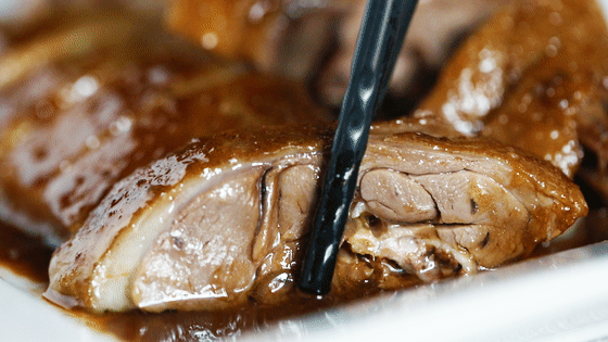 手工撕好的鸡肉,细腻可口,鲜美多汁。上层的鸡皮颜色优良金黄,带有少量的皮下脂肪,细嚼之下皮爽而不腻,肉软而不柴。