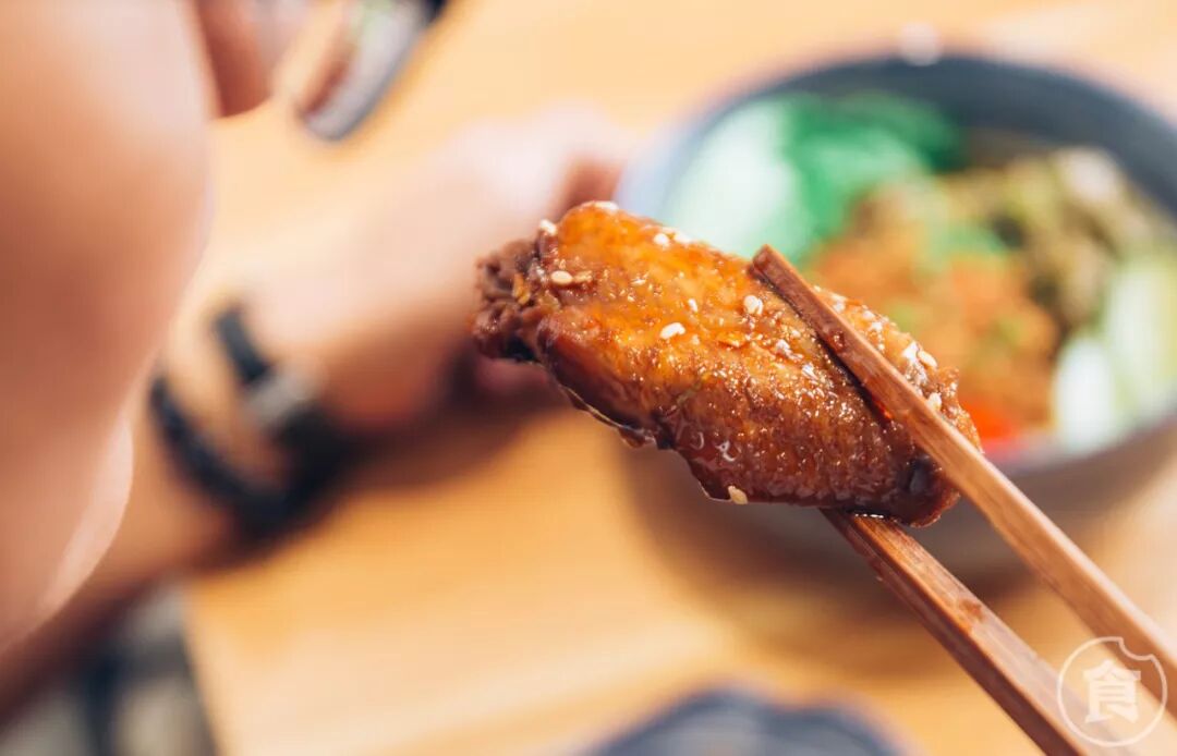 鸡翅被卤得入味,连骨头都充满香味,嘴巴一抿就能将它脱骨。
