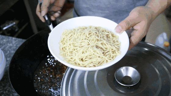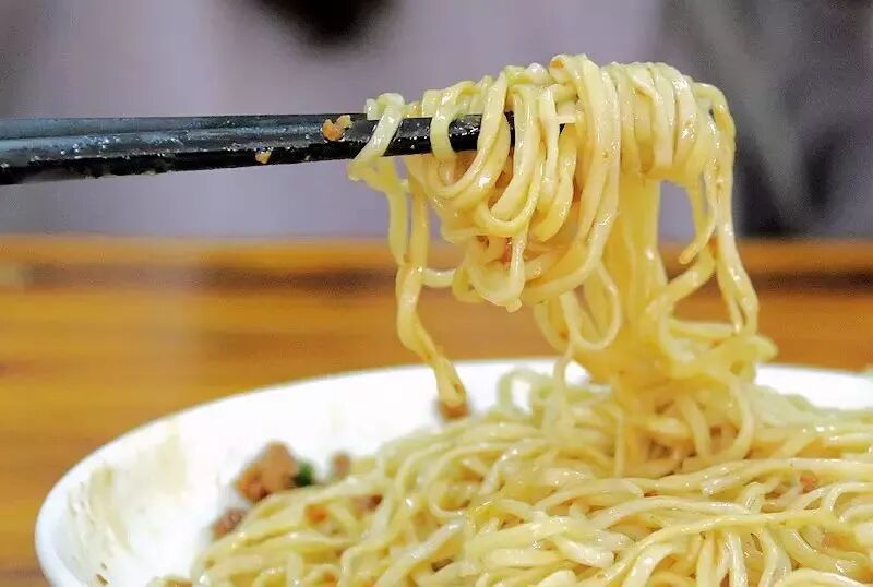 面条也是自己手工制作,趁热的时候将杂酱和面条搅拌在一块。面条的嚼劲搭配肉酱的香,光是闻到香味就已经很馋人。