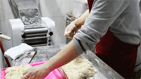 眼看民哥将做好的面条用手捆成一捆时,眼明手快,没想到每个面饼都净重2俩。从十几岁开始接触这行的民哥,对于面条几斤几两来说早就能用手来称量了。
