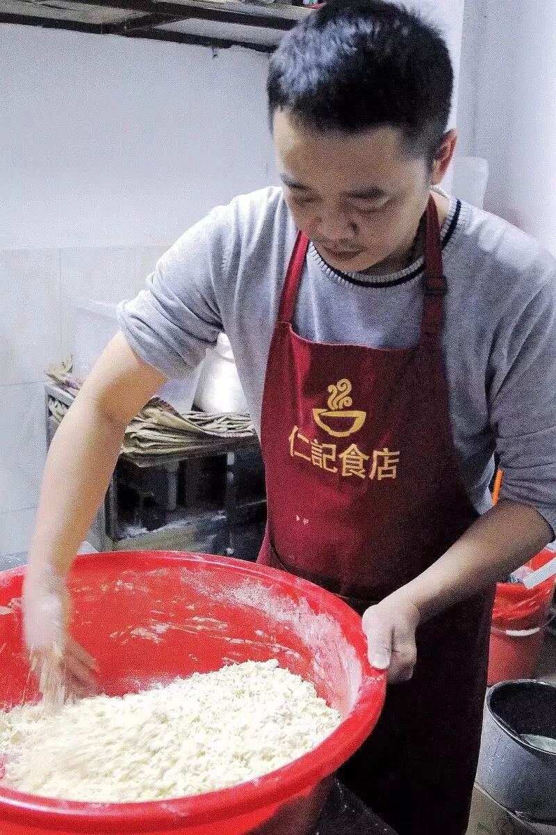 但是唯一不变的,就是这门手艺。无论是面条还是云吞皮,35年来仁记一直都是坚持自己手工制作。在中信水岸城这家仁记,现在由仁叔的小儿子-民哥来打理。