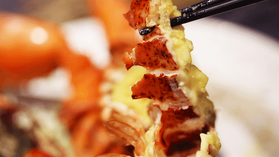 用筷子将尾部撬开后,稍微用力往上扯,一整条波士顿龙虾肉呼之欲出,满口的鲜香滋味,实在是让人回味无穷。