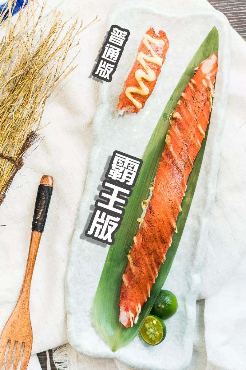 跟普通版的蟹柳寿司比起来,霸王蟹柳足足大了3倍!吃起来的幸福感与满足感用言语也难以表达,只有吃过的人才能懂了~