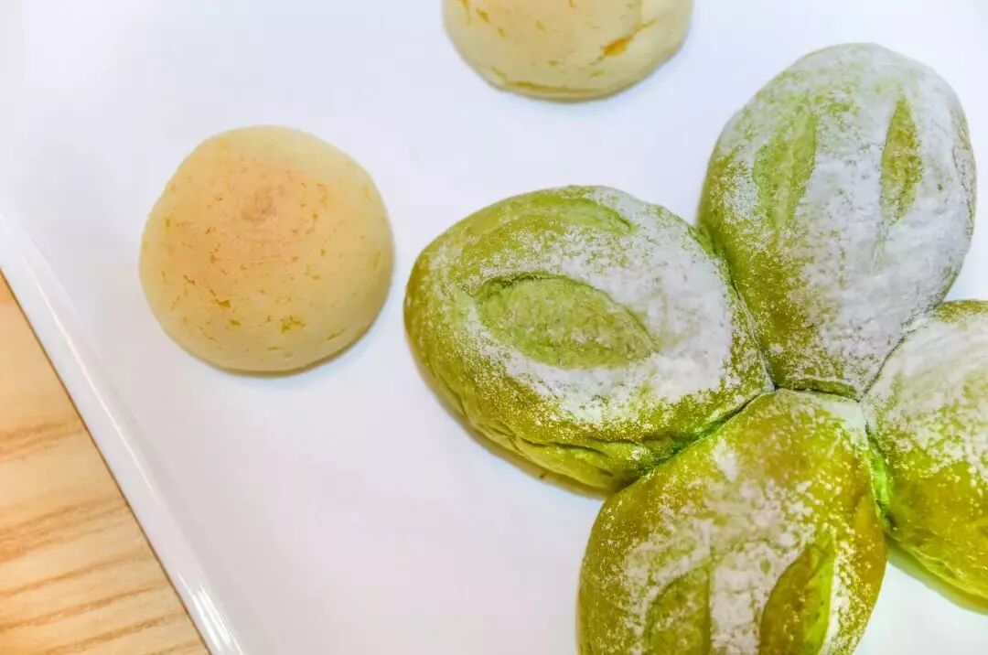 如四叶草般的外型下,抹茶元素已经融入了整个面包中,鼻子凑近点已经能闻到淡淡的抹茶香,再撒上一层奶香的椰蓉粉,让整个口感大大升级。