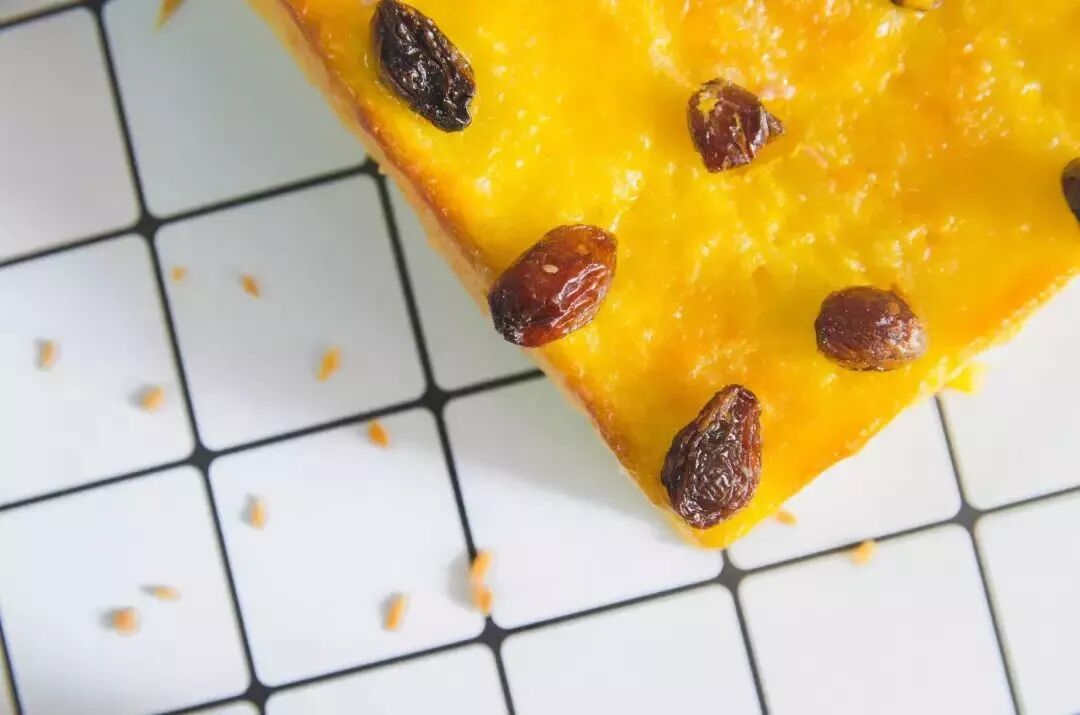 特别是提子干用4×4的布局均匀的摆在乳酪面包上,喜欢提子干的你可以在任何方向开吃,完全不用担心口感不均匀。