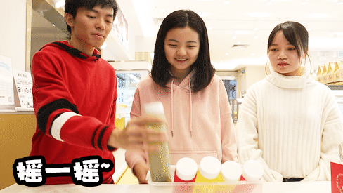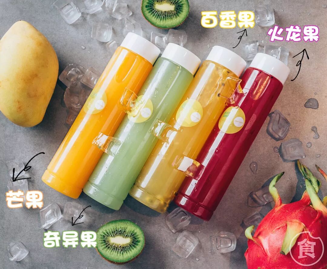 这里的果汁饮料,喝前必须摇一摇,不然怎么让堆积的果粒自由地徜徉在果汁里…