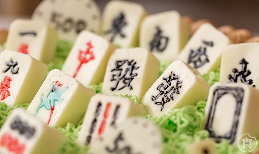 各个麻将牌以假乱真,其实是纯白巧克力制作,字体是刻上去的,凹凸的感觉100%还原真实麻将,雀友们要不要盲摸看看,能摸出牌名算我输!