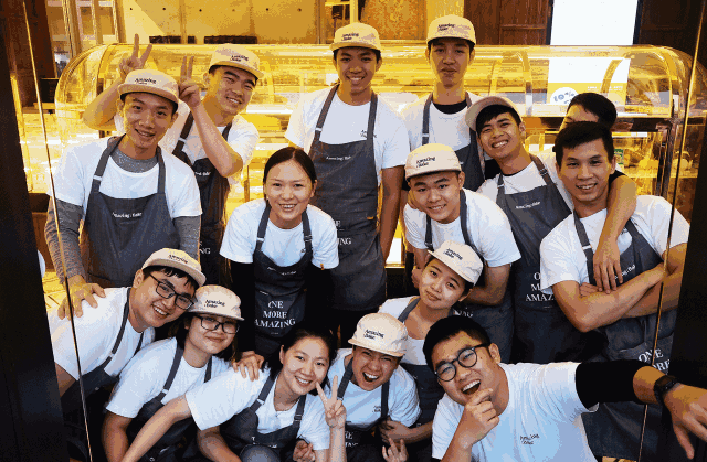 一楼天花板的精致装修,让进店的客人都对它赞叹不已。二楼的瓷砖为了做出立体的效果,每个小粒都是慢慢拼出来的。在这里你所看到的每一处,其实都包含了小伙伴们的满满用心。
