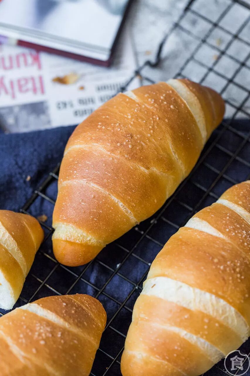 奶香十足,滋润柔软,卷入有滋味的咸黄油。一款简单的盐面包能吃出3种口感:底酥、皮脆、内柔软。