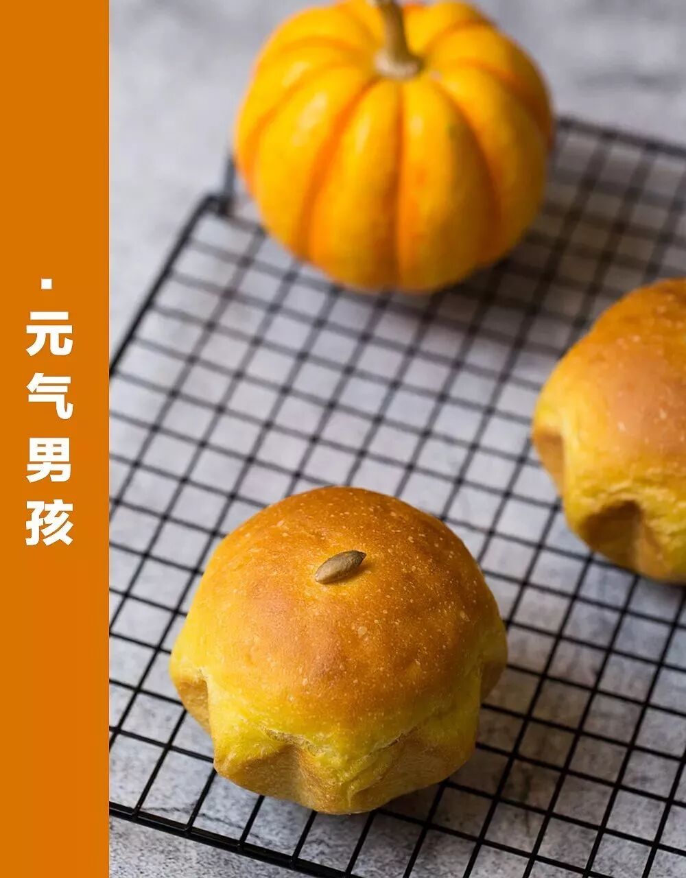 从面粉、内馅到外形,元气男孩都做成了小南瓜的模样。看着这金灿灿的元气男孩,彷佛也能感受到丰收的喜悦。