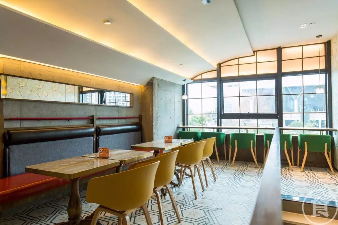 这里的每一处装修也是有寓意的,穿过二楼的隔层上到三楼,你会发现凳子的颜色从绿色变成了黄色。老板说,这是寓意着小麦成熟了的一个过程。