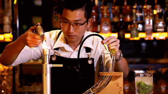 坐在吧台前,看着调酒师们每一个帅气的姿势与各种新奇好玩的技术。灯光昏暗、听着音乐与三五知已,感受在这的曼妙时刻。