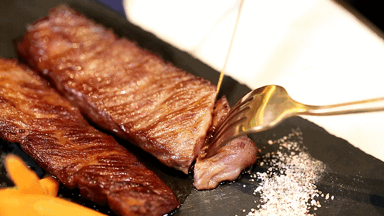 这里的牛小排必须选用指定的第6-8根肋骨的部位,7成熟的口味最佳,透着淡淡粉色的肉质,蘸上点海盐,饱满肉汁充盈着口腔,实在是味觉盛宴。