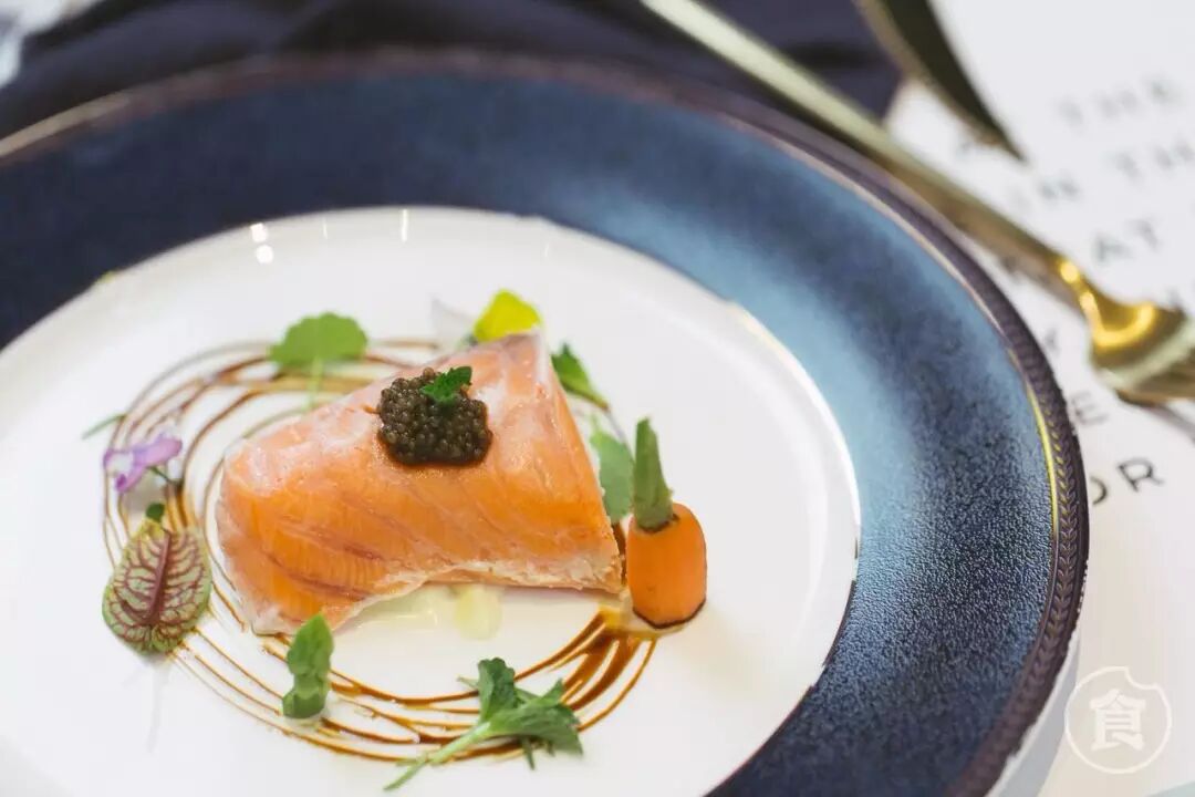 三文鱼低温煮制到全熟,配上鱼子酱点缀。软绵口感的三文鱼,仿佛一口咬下了一块丰富多彩的春天。