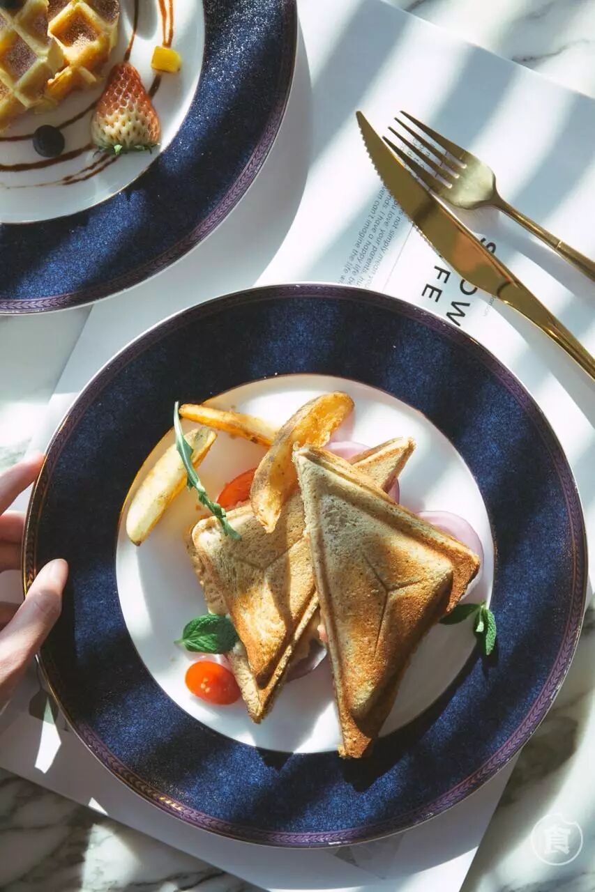 在阳光明媚的午后,朋友小聚或自己惬意,少不了能量小吃。用烤得金黄的全麦吐司包裹着芝士与火腿粒,一口咬下去满满的馅料在嘴里,特别地满足。