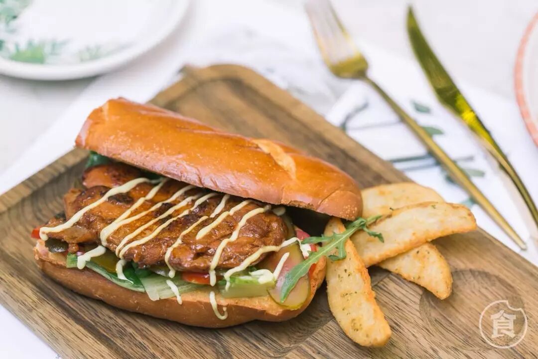 外表坚硬的法包,底下却有着让人意想不到的柔软。夹着鲜嫩多汁的板烧鸡扒与新鲜时蔬,味蕾在这一刻得到了享受。