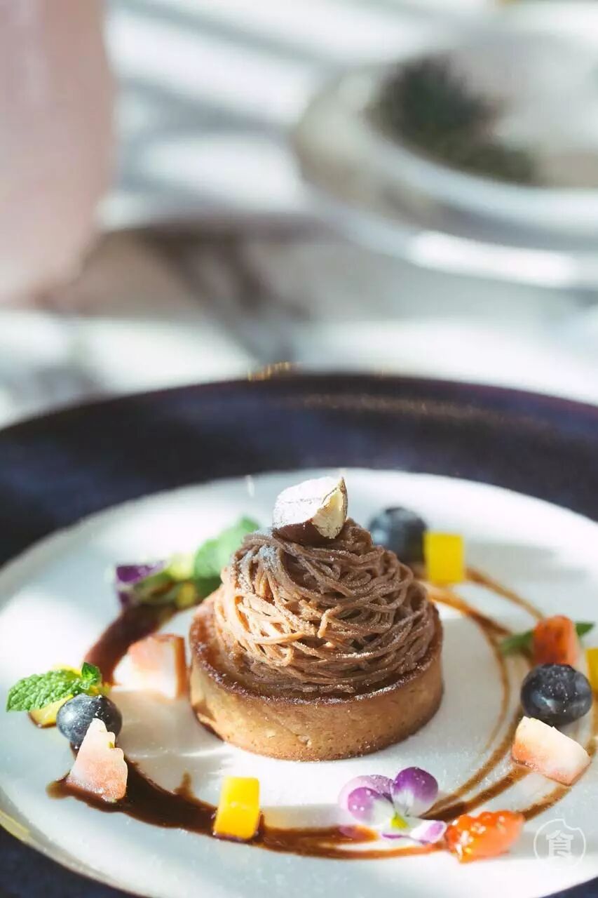 以酥松浓郁的黄油挞皮为基底,上面是幼滑的焦糖栗子馅与奶油。它的味道十分有层次感,焦香微苦与栗子醇香,香味在口中延绵。