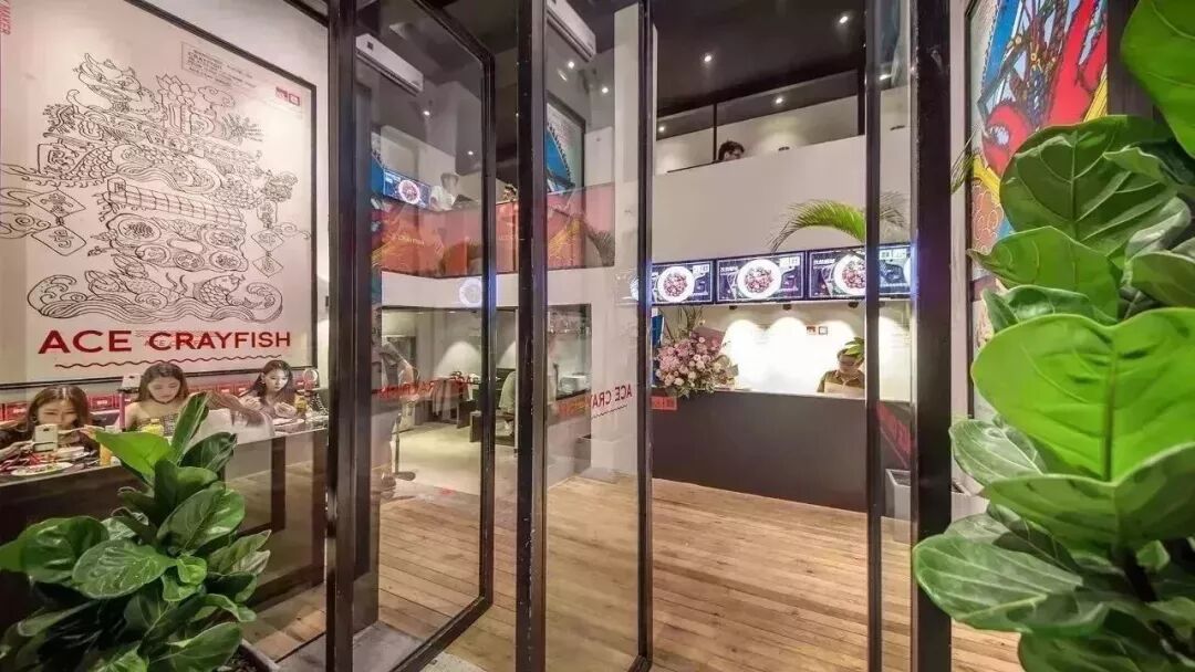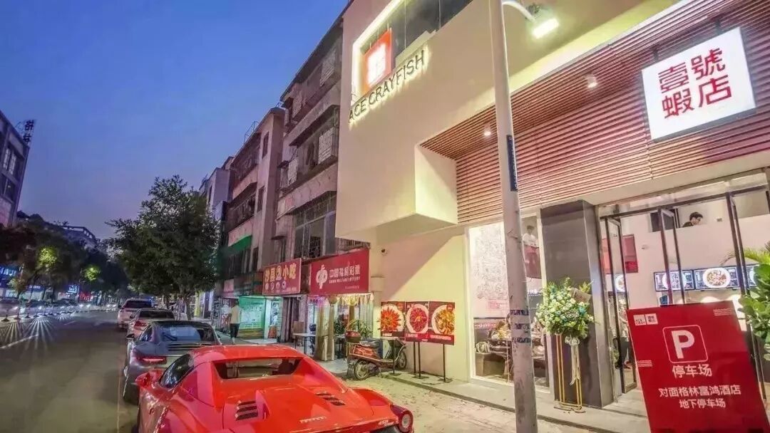 远远就看到的一栋三层独栋的小白楼,在一排店铺中很是显眼,到室内以红色为主题搭配黑白色,墙面挂着生动的小龙虾漫画造型,一进门就能感受到个性的炫酷感。