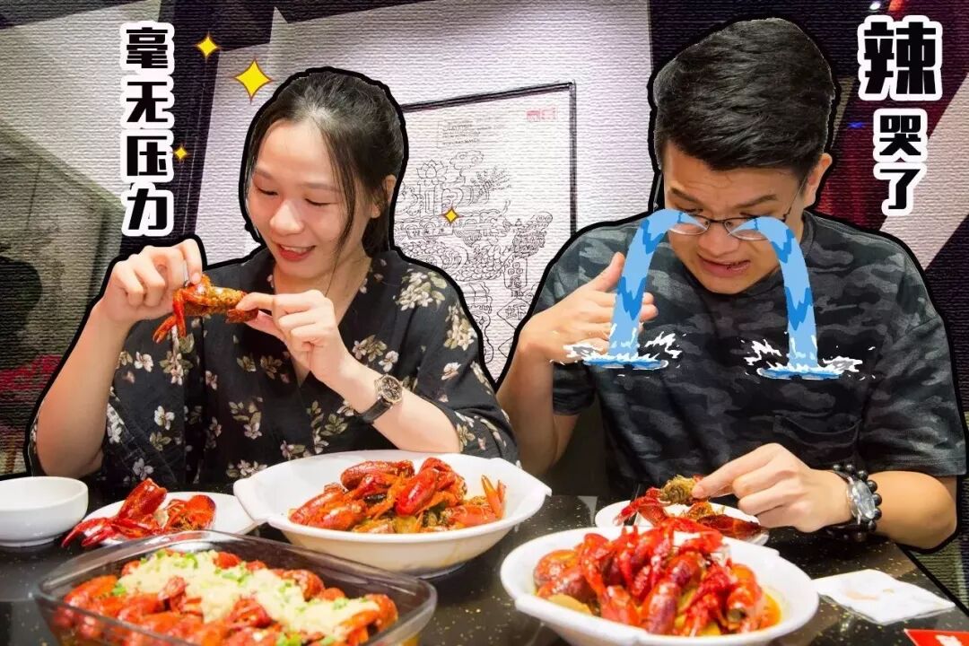 懂套路的都会先吸一口小龙虾的麻辣汤汁,然后就可以看到各种反应,有的人淡定自若,有的人声泪俱下,麻小真的让人又爱又恨啊。