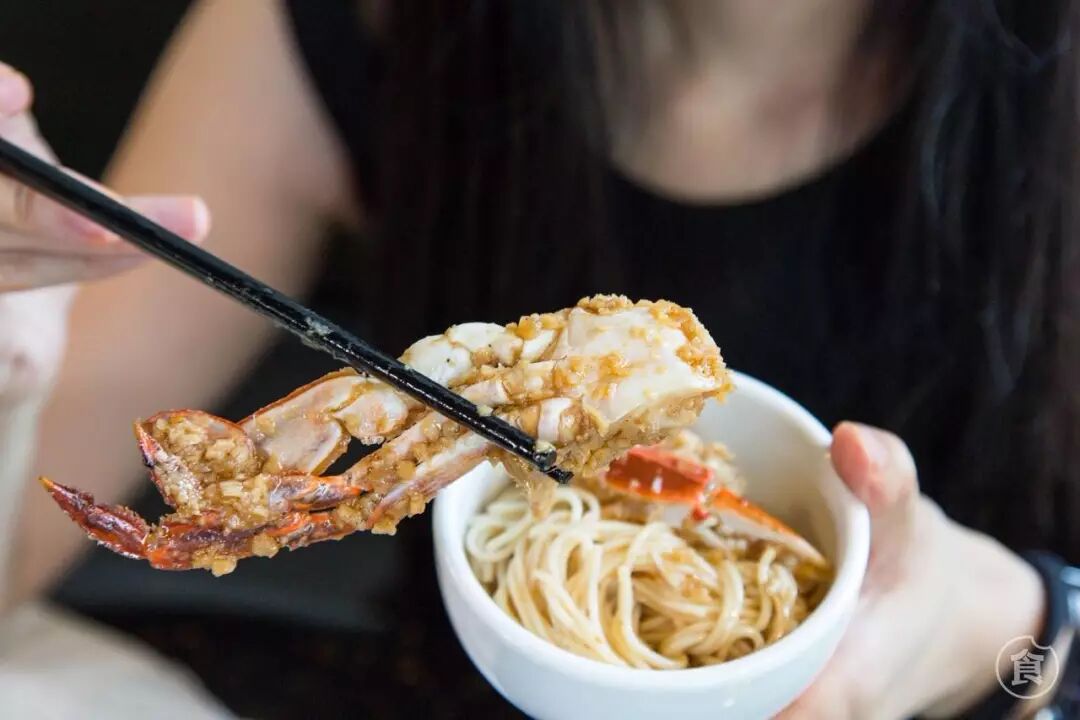 橙红的蟹,黄褐色的面,再将油绿的葱黄白的芝麻一撒,成品非常漂亮,当爆香的葱姜味混合蟹特有的咸香飘进鼻子里,真的很难抵挡这般诱惑。