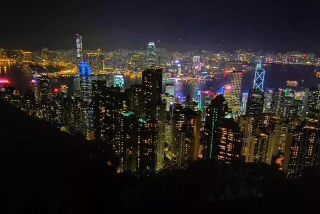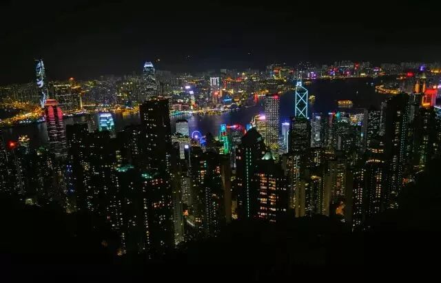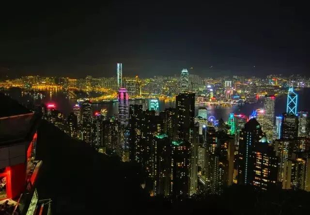 香港的白天与夜晚是截然不同的。白天都市氛围浓厚,摩天大厦直冲云霄;夜晚万亮起家灯火,温馨的星火点亮大地。在黑幕降临时,从太平山顶俯视眺望香港的夜景。黑夜看黑得纯粹,看近处摩天大厦的点点星火,看远处维多利亚港的闪耀辉煌。