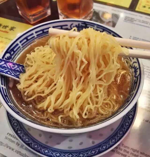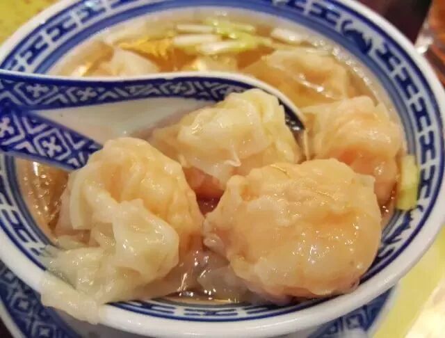 麦奀云吞面世家也是有很多分店,有一家在山顶翠华餐厅隔壁。特别提醒,它有最低消费哦。我们点了全蛋银丝细面(42HK),鲜虾云吞(42HK)。碱水面超级爽口弹牙,汤底清却有味道。