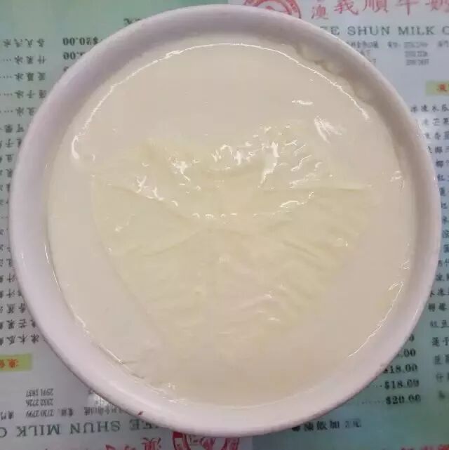 一份双皮奶(34HK)。它有豆腐同样嫩滑的口感,乳白色的双皮奶上漂着一层纸衣,挑着吃掉,再深挖一口,接着闻到的全是奶香味,像冲泡的纯牛奶一样香浓,感觉每一口都是纯纯奶粉的味道。