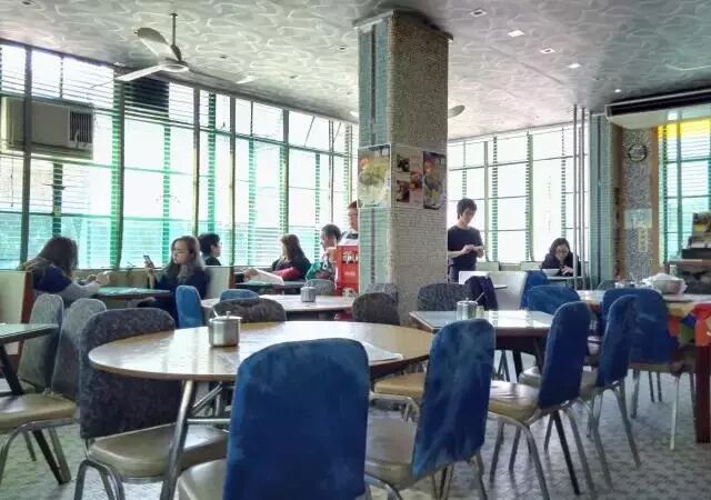 进店请上二楼雅座。墨绿色的百叶窗,彩色马赛克的楼梯通道,连体直背的长椅,贴满各式菜单的墙面,悬挂的大吊扇,旧时的收银机…和2000年的时候一模一样。即使时间过去,也带不走它的容颜。