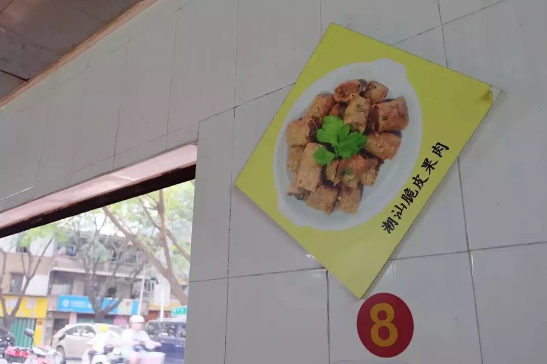 店里的墙上到处贴着“潮汕脆皮果肉”。忍不住,还是对老板喊了一句,“给我来一份!”