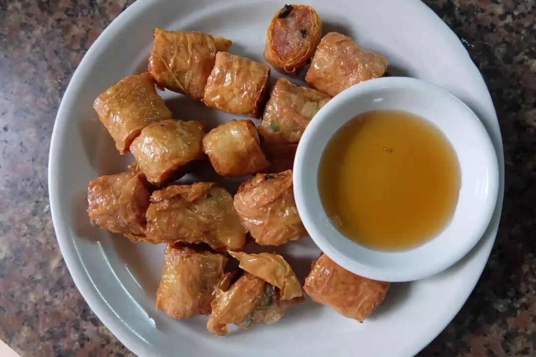 炸好的果肉呈金黄色,里面有马蹄,咬起来脆脆的。蘸一蘸桔子油,酸酸甜甜,一下子就能消灭几个!