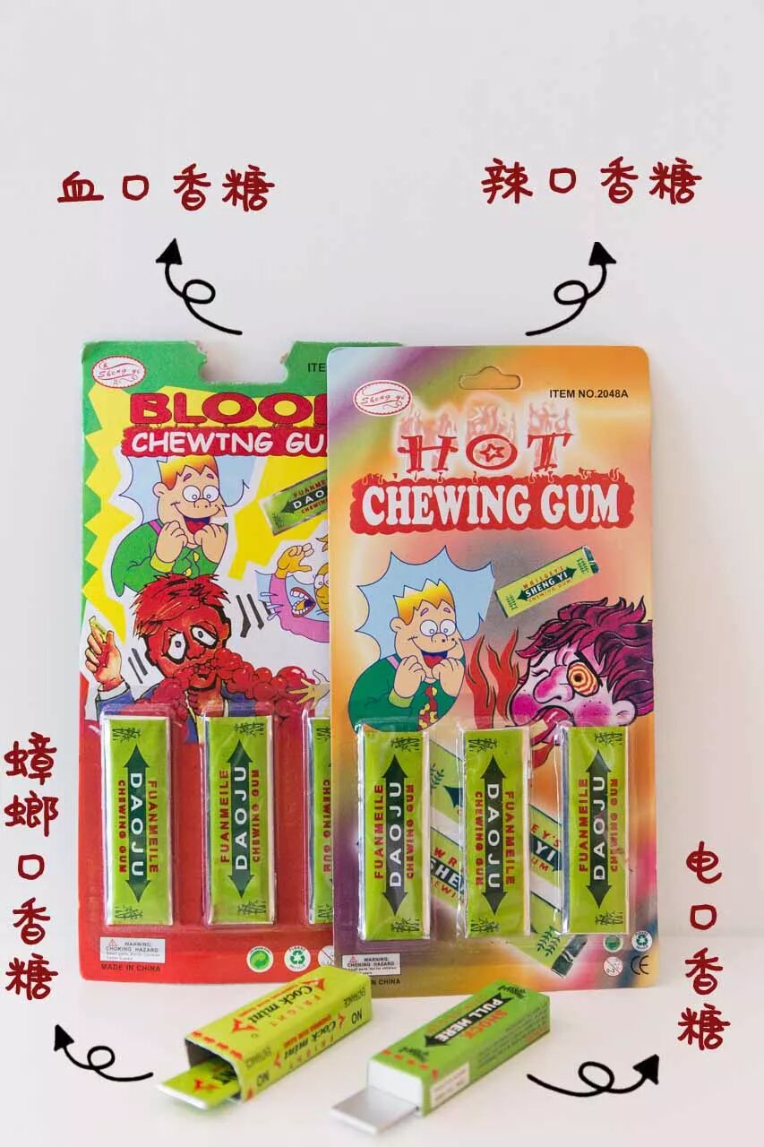 整蛊测评:传说中的辣味口香糖和血口香糖,就是在普通口香糖表面撒了一点辣椒粉和红色粉末,从表面一下就能识破。辣口香糖嚼起来有一丢丢辣椒味,但是味道实在太淡,基本整蛊不到人。至于血口香糖,只能说完全没有效果,差评!