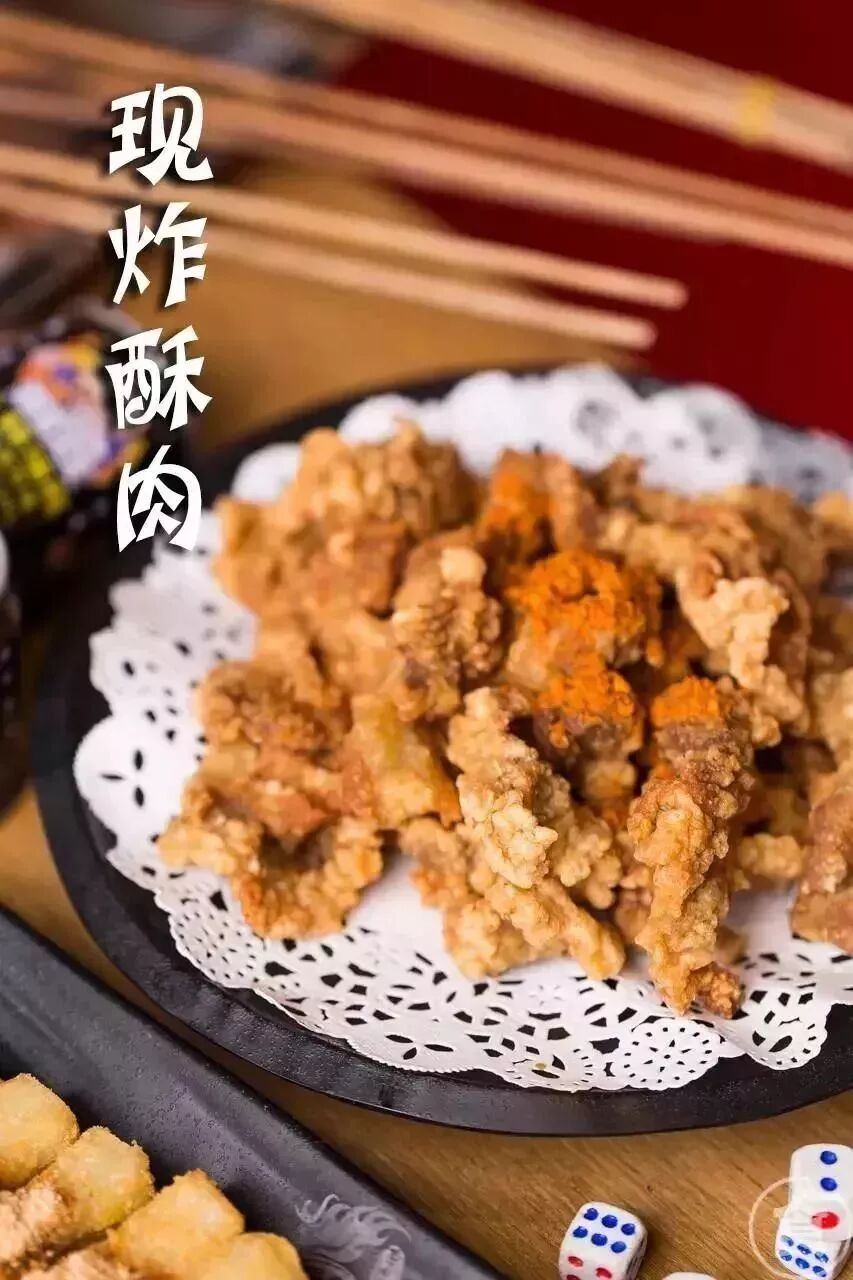 吃火锅又想吃炸物?那就叫一份酥肉呀。它选用肥瘦相间的里脊肉,裹上一层炸衣后在沸腾的油锅里翻滚,新鲜做起香酥可口,瘦而不柴,味道巴适得板~