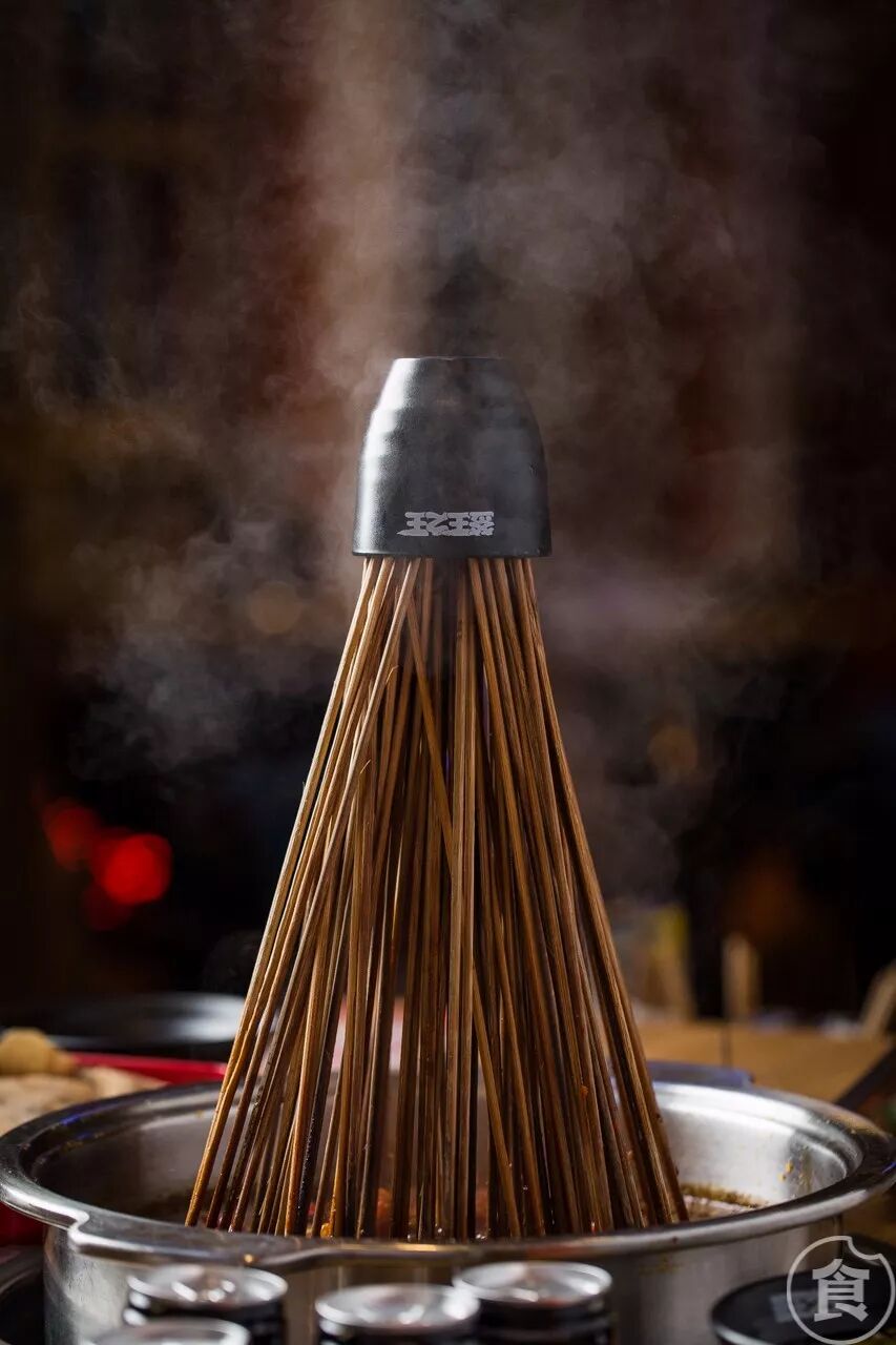 这里偷偷告诉你一个吃串串的小技巧!将串串立起来,用杯子盖住竹签底。这样就可以保证食物都被滚熟,剩下的事情就是静静等待,拍几张照片了。